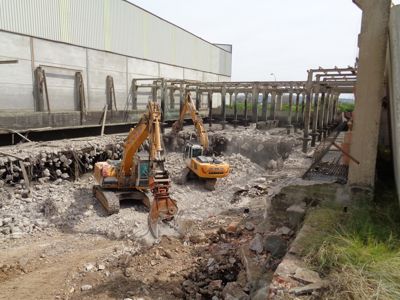 Demolición de Estructuras de Balsas de las antiguas instalaciones de LOGSA en Córdoba. DEMOLICIONES CÓRDOBA, inicia los trabajos de demolición de balsas en las antiguas instalaciones de LOGSA en Córdoba, donde también se realizaran los trabajos IN SITU de la valorización de los residuos con una de nuestras plantas móviles, asi como extendido y compactado.