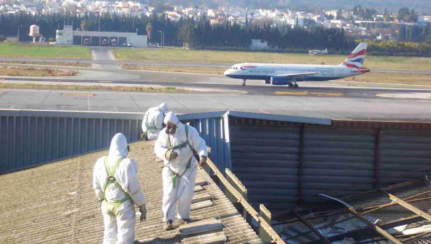 Retirada de mas de 80.000 metros cuadrados de placas de gran onda en fibrocemento y con alto contenido en amianto. Transporte y gestión de los residuos.