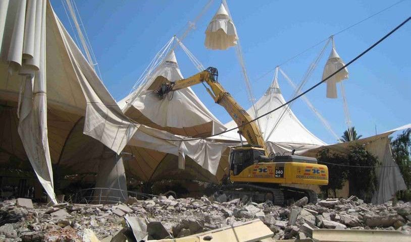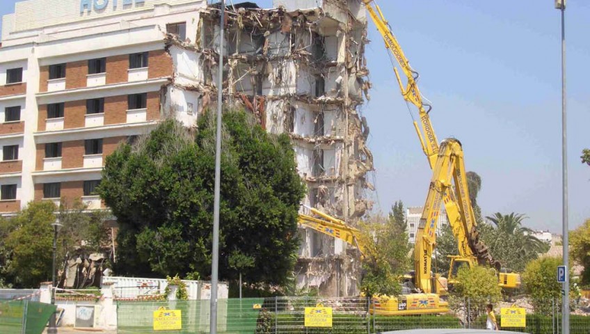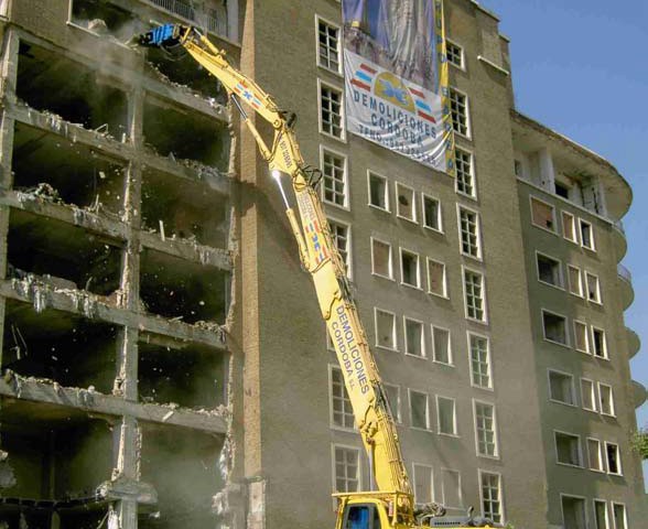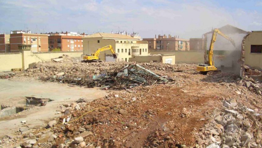 Demolición de Centro Penitenciario de Córdoba, selección de diferentes residuos, demolición de cimentaciones y reciclaje de escombros in situ para su reutilización en obra posterior.